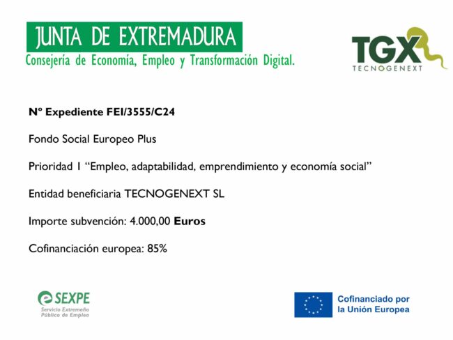 En Tecnogenext estamos muy contentos de poder contar siempre con los mejores en todos nuestros puestos. Por eso hoy celebramos las nuevas incorporaciones que, además, han sigo apoyadas con la ayuda de la Junta de Extremadura en colaboración con el Fondo Social Europeo Plus dentro de su prioridad 1 de Empleo, adaptabilidad, emprendimiento y economía…