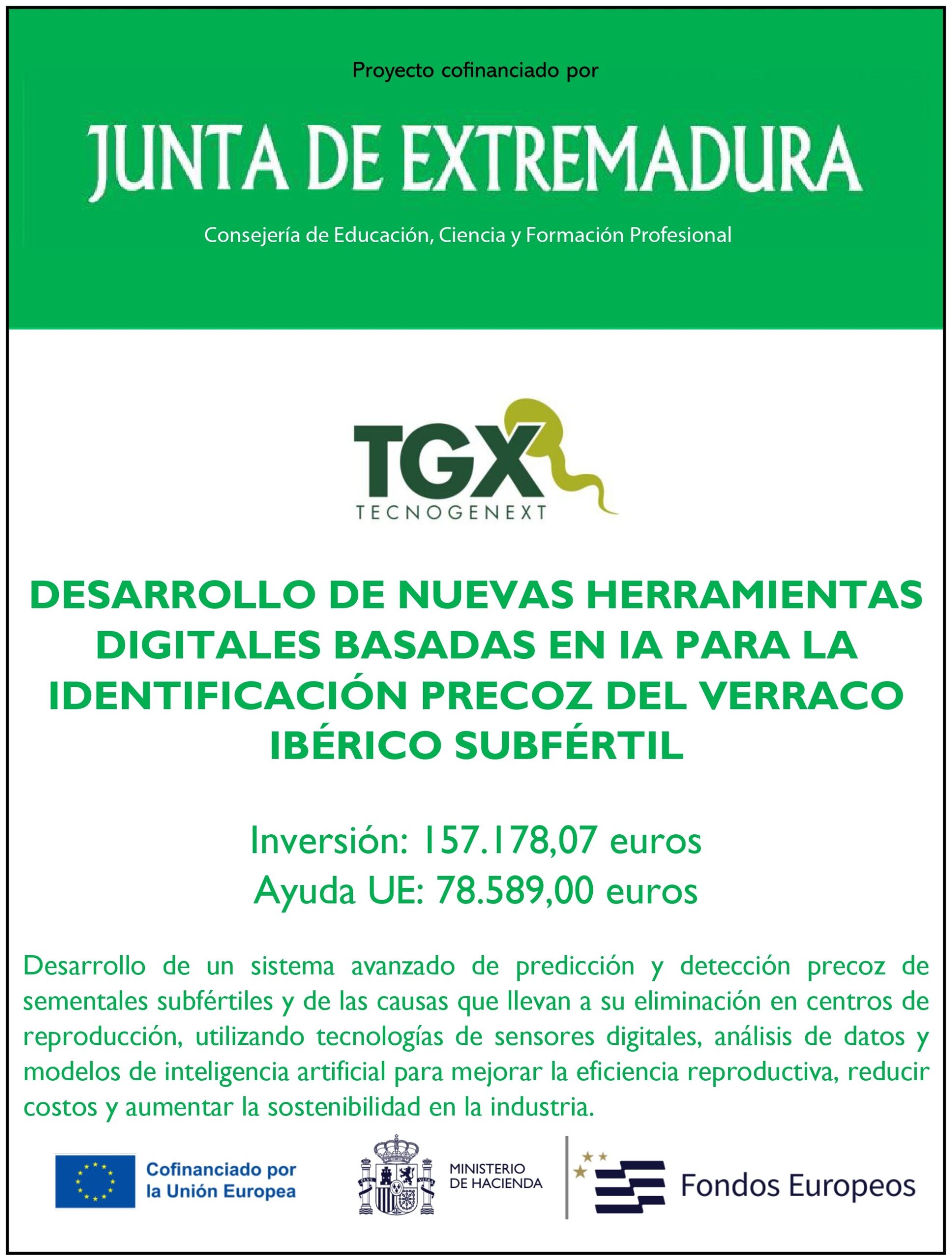El objetivo general del proyecto consiste en desarrollar un sistema avanzado de predicción y detección precoz de sementales subfértiles y de las causas que llevan a su eliminación en centros de reproducción de cerdo Ibérico y cerdo Duroc destinado a Ibérico, utilizando tecnologías de sensores digitales, análisis de datos y modelos de inteligencia artificial para mejorar la eficiencia reproductiva, reducir costos y aumentar la sostenibilidad en la industria.